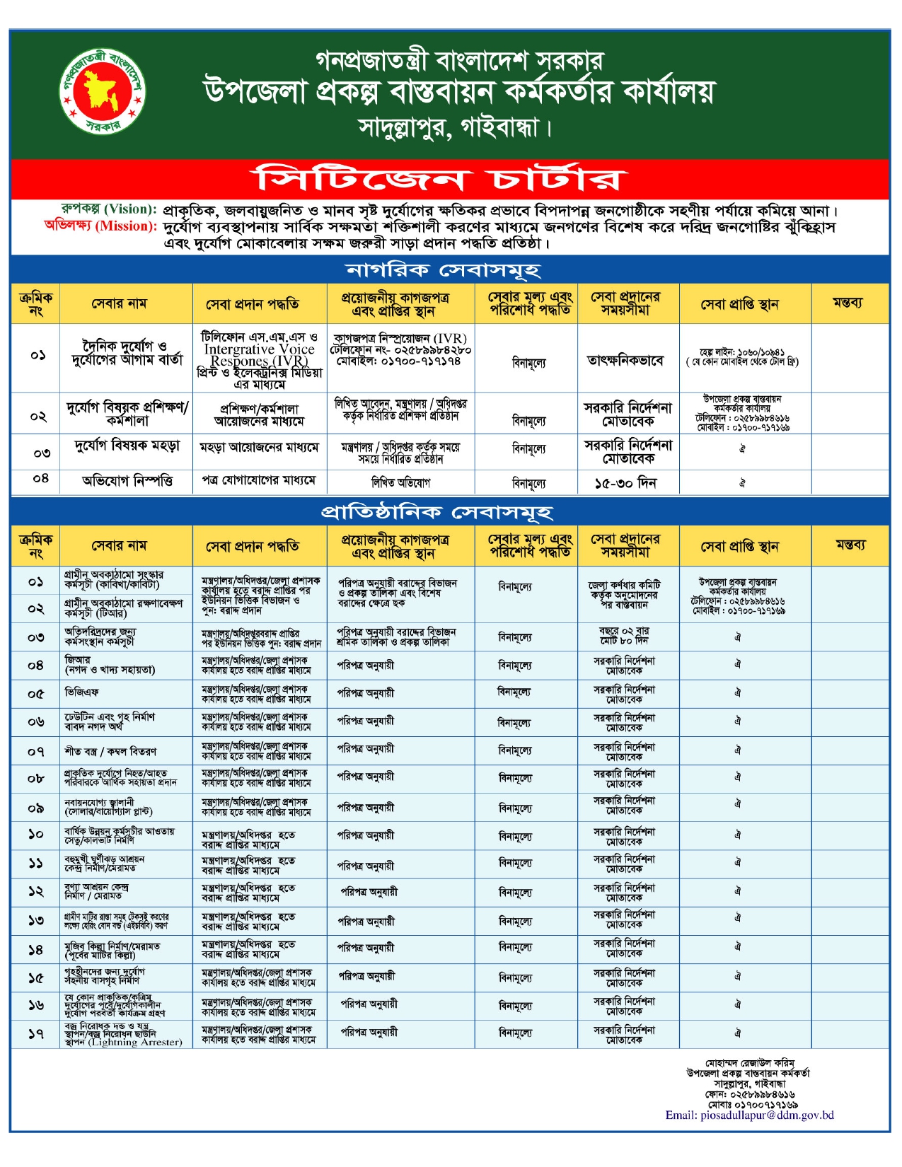 নাগরিক সনদ/ সেবা প্রদান প্রতিশ্রুতি